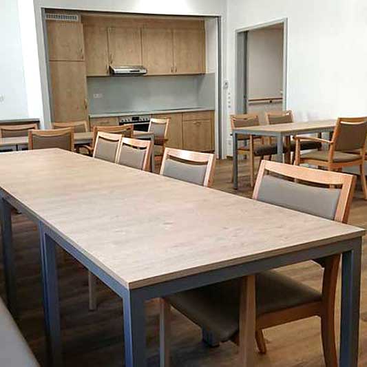 Viele dieser Baumaßnahmen wurden unter erschwerten Umständen im laufenden Betrieb durchgeführt. Zur Erbringung von Eigenleistungen wurden auch hauseigene Handwerker der Auftraggeber mit in die Gesamtkonzeption eingebunden und in die Abläufe integriert. Auf diese Weise wurden u.a. viele komplette Pflegestationen in Krankenhäusern und Altenzentren gestaltet.